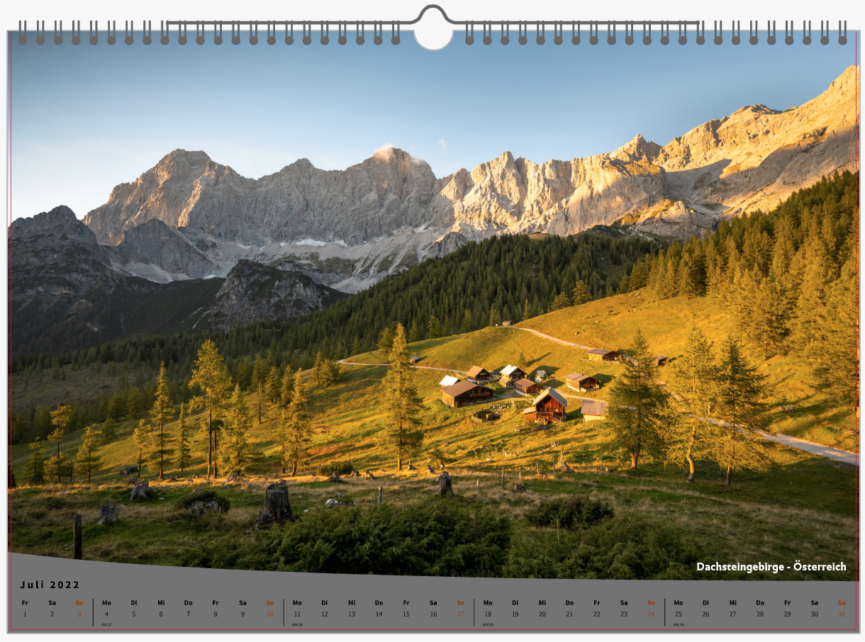 Auf 13 Seiten zeige ich Bilder aus verschiedenen Regionen der Alpen und dies zu abwechselnden Jahreszeiten. Von engen Bachläufen im Wald, über weite Landschaften bis hin zu schneebedeckten Gipfeln. Die Alpen haben viel zu bieten. Alle Aufnahmen aus dem Kalender für 2022 sind im Kalenderjahr 2021 entstanden und somit sehr aktuelle Fotografien. Dieses mal hat es tatsächlich nicht an Bildern zur Auswahl gemangelt. Vielleicht eher an Aufnahmen die auch in gewisser Weise den jeweiligen Monat gut repräsentieren.